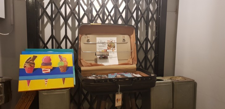 There is also a small corner with an old suitcase, records and even a retro metal gate for photo lovers.