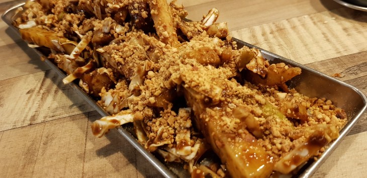 This next dish is a twist on the local Rojak dish which is basically sliced fruits and turnips in peanut and salty prawn paste sauce. Served like a salad, the taste is quite similar to the local Rojak dish