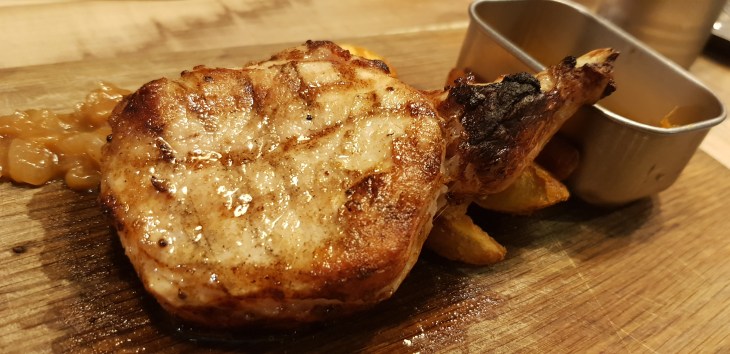 My pork chop was very juicy and nicely seared but personally I found it slightly too tough.