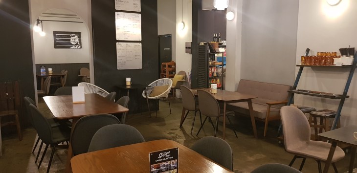 The cafe is located around East Coast Road in the white grunge bricks and clean gray and wood furnishings