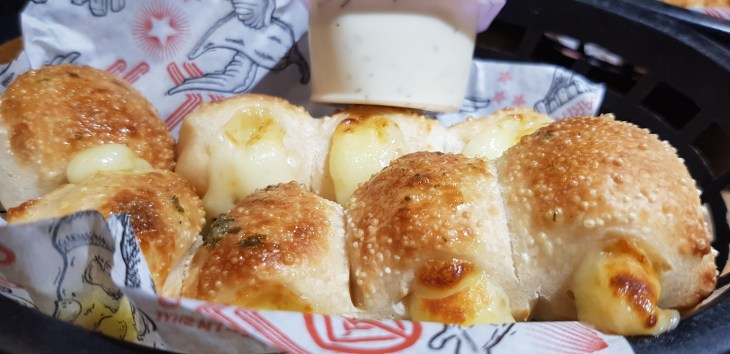 Our first starter was the cheesey bites which essentially is melted cheese inside toasted garlicy bread. This is very good when served hot as the cheese is soft and has a good pull and string. This can be rather filling
