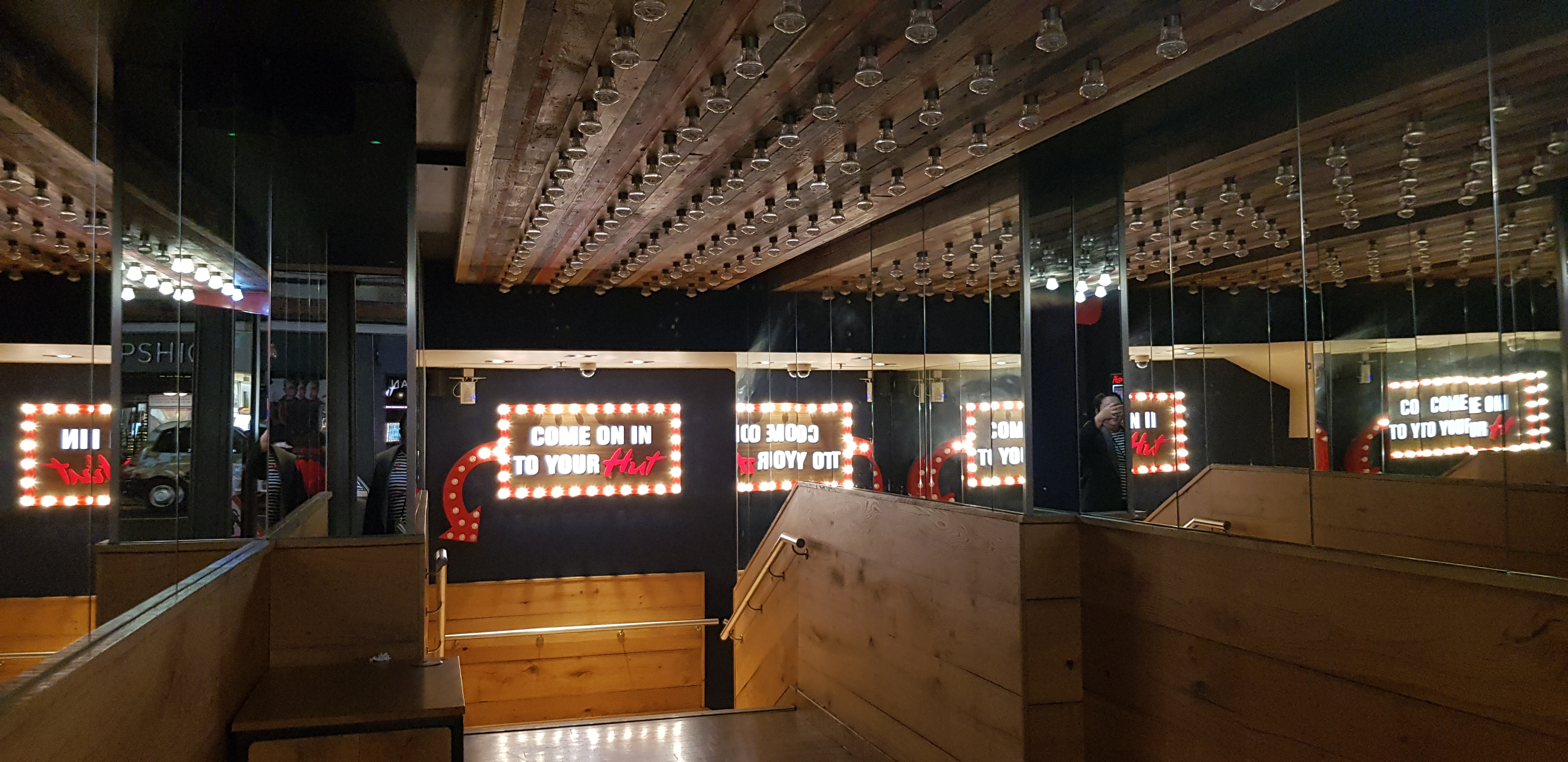 What do you do when you shop till the last store on Oxford Street closes and all restaurants are closed? Find the Fast Food except this Pizza Hut outlet feels more like a bistro than a Fast Food Outlet