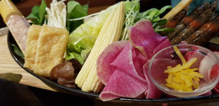 The original chicken pot comes at SGD 25 (exclude tax) per person with a standard set of chicken chunks, vegetables, mushroom and meatballs. You can choose up to 2 more ingredients from a list in addition. I chose the prawn and red radish. You can also choose the set that comes with pork or seafood at a higher price range.