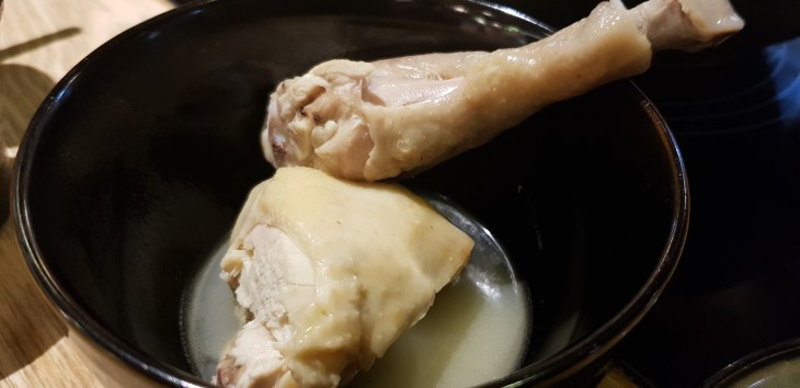 Next the server will serve you the chicken which comes with the soup base