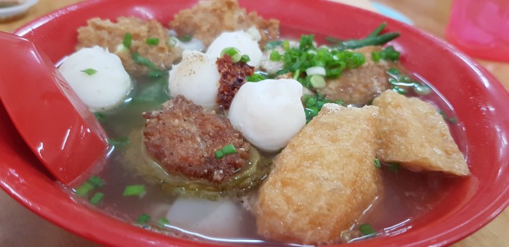 The ingredients were either fried or just cooked in clear broth. The ingredients were fresh with signature Hakka pork filling. The pork was flavoured with abit of salted fish and was a good balance to the rest of the vegetables and beancurd. The fishball was also very springy.