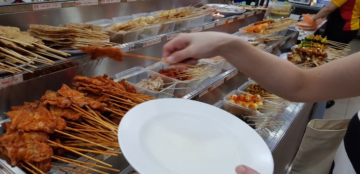There are also many other items like squid, lady fingers, long bean, quail eggs and more which is all cooked and marinated the same way. The skewers come with a spicy dipping sauce and costs approximately SGD 40 cents to 80 cents each.