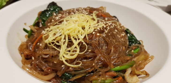 Jap chae is basically a glass noodles, cabbage, carrots and greens seasoned with soy sauce, seasame oil and other sauces. This is a cold dish served as a side dish or you can have it as your main carbo intake. The noodles were full of umami flavours as it has fully absorbed the sauce.