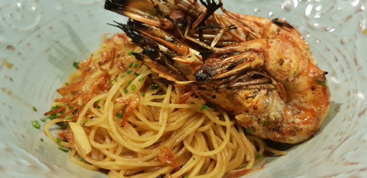 The prawn capellini in aglio olio topped with sakura shrimps was very pocket friendly at SGD 21. The pasta was al dente and lightly seasoned with olive oil and garlic. The sakura shrimp added a layer of seafood flavour to the noodles. The 2 prawns were huge in size and pan seared to give off a nice smokey flavour.