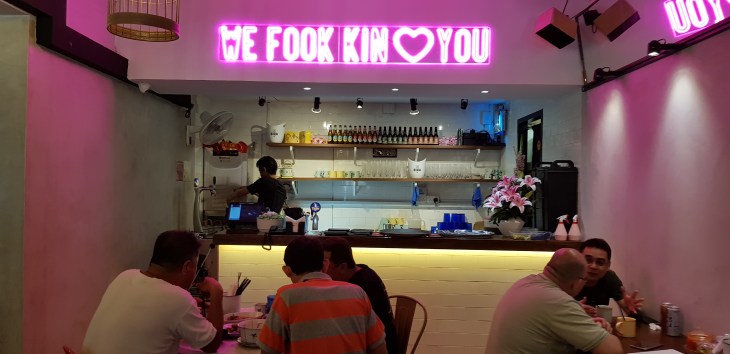 The restaurant itself is a fusion of old school 1980s coffee shop eatery with a good twist of modern hipster touches like this pink neon sign. Even the restaurant name is a cheekily twist to the term widely used by by young people today.