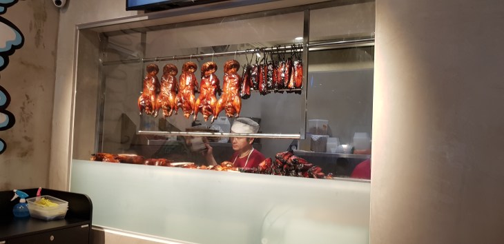 Rows of glistening roast duck and pork can be seen at the back of the restaurant like your typical Chinese roast shop.