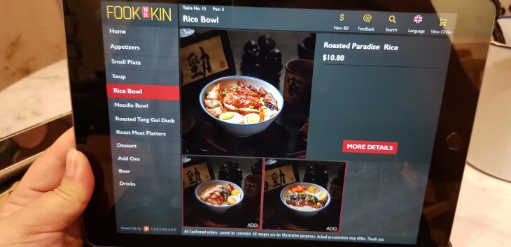 At the table, you can place your orders with the ipad attached. The main item on the menu is the roast meats with selection of rice or noodles as well as soup to complement the meal. For solo diners, they have also introduced very friendly rice bowls like the Roasted Paradise rice which has a mix of all 3 kinds of roast meats and a braised egg for only SGD 10.80