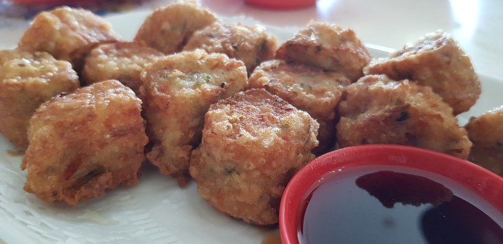 The fried mince prawn dumpling is fried till golden brown and each dumpling has a nice texture and crunch with minced vegetables and chestnuts mixed with minced prawn and pork meat. The skin is crispy and the inside is juicy and soft and taste great with sweet sauce provided.