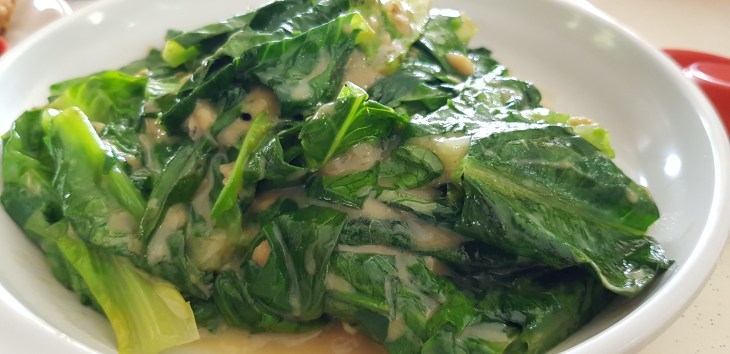 The lettuce is fried lightly with garlic and fermented bean curd so the dish has very crunchy texture and the sauce complements the greens well.