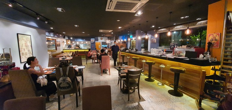 Nestled along a stretch of shop houses directly opposite a private housing estate, the areas surrounding the restaurant is pretty exclusive and quiet. Parking can be quite limited so it would be good to drop by earlier. The restaurant itself is quite spacious with both internal and external tables with a long bar counter for drinks.