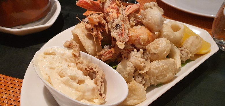 The next item we ordered for starters is the seafood fritters which has squid and prawns fried in batter. The seafood was fried till very crispy but I found their colour very pale and taste a bit bland although you can dip them in the mayonnaise provided for more flavours.