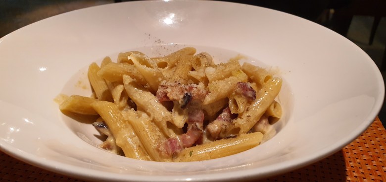 One popular pasta across ages is the carbonara which my friend ordered and the restaurant changed the pasta to penne upon her request as well. The carbonara here is not overly creamy and there is just enough sauce so that every penne is nicely coated. The only downside for me was the pasta is slightly too salty.