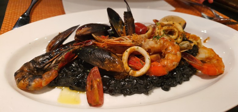 This next dish was quite a delight to look at when it was served on our table. We had the black ink risotto with seared seafood. This risotto was generally quite delectable as the risotto has that unique salty flavour from the black ink and the seared seafood were fresh with a slightly charred taste.