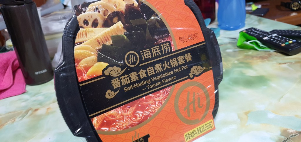 In 2018, they launched this new item in China which is the self heating hotpot and it instantly became a sell out. They carry a huge variety of flavours and it was slowly introduced to Singapore in major supermarkets. There are a limited selection of flavours found in the supermarkets due to the food quality control but you could probably get a bigger variety online. I was pretty skeptical when they launched this product and felt it should be a gimmick more than a realistic product worth trying. Due to the pandemic as more people stayed home and Hai Di Lao stayed closed, this product became even more popular, therefore I finally decided to buy 1 to try at home.