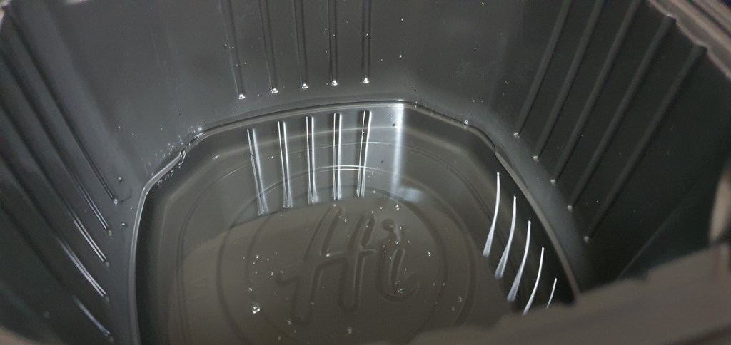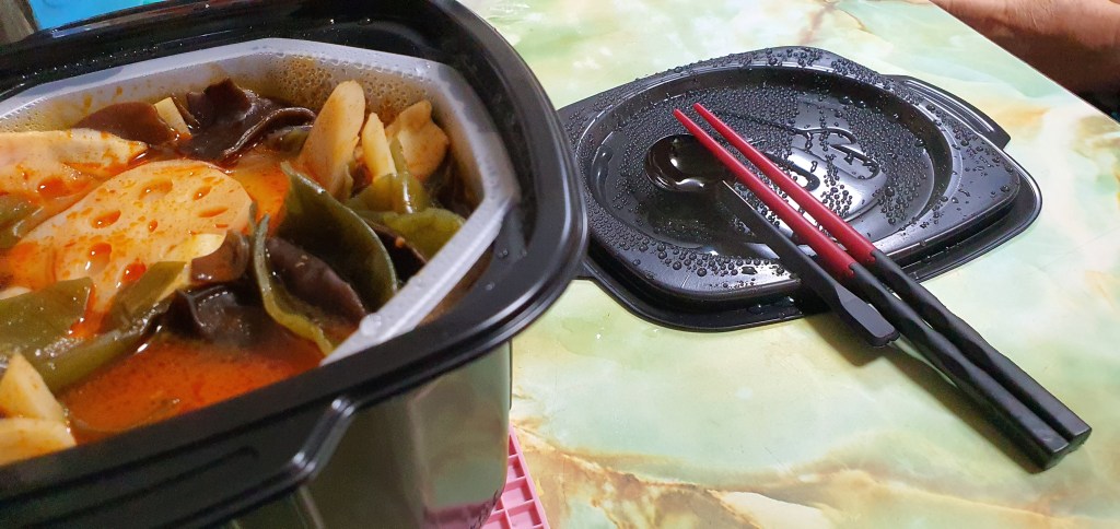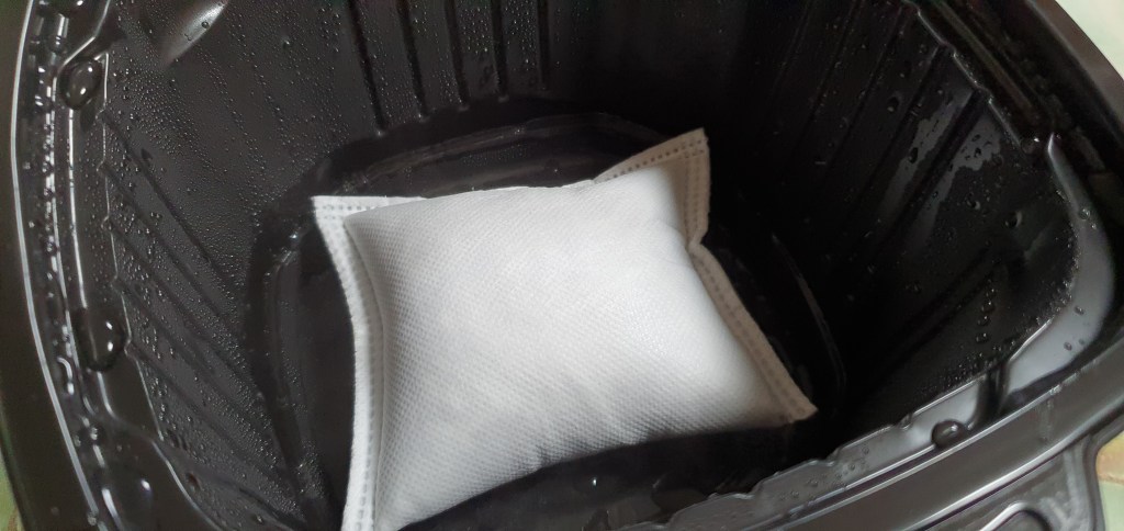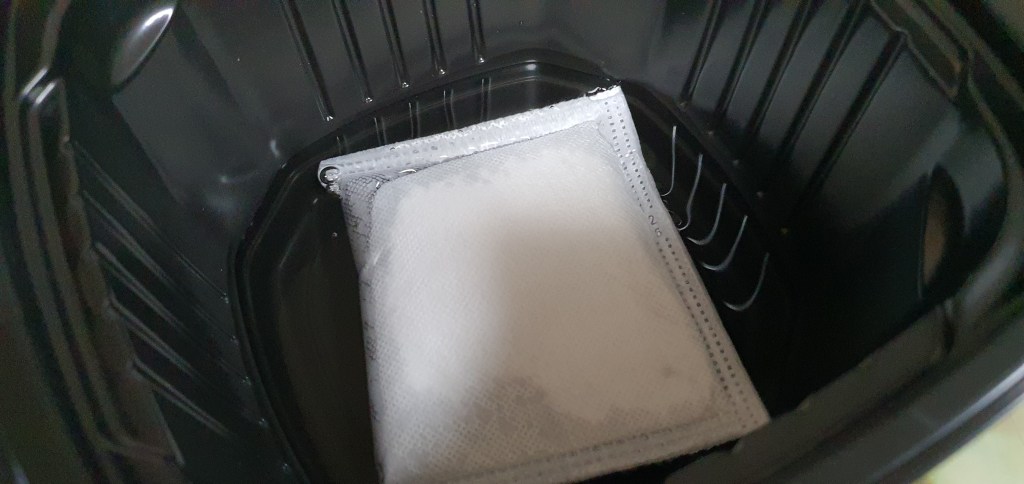 By the end of my meal, I was curious about the heating pack and took a look at it and saw this bloated packet where most of the water has already evaporated. The heating pad was lukewarm to the touch and although when you press it, it still sizzles a little bit. As I was paranoid about setting my apartment’s rubbish chute on fire, I decided to soak the heating pad in tap water for another good 10 mins to make sure it was no longer generating heat.