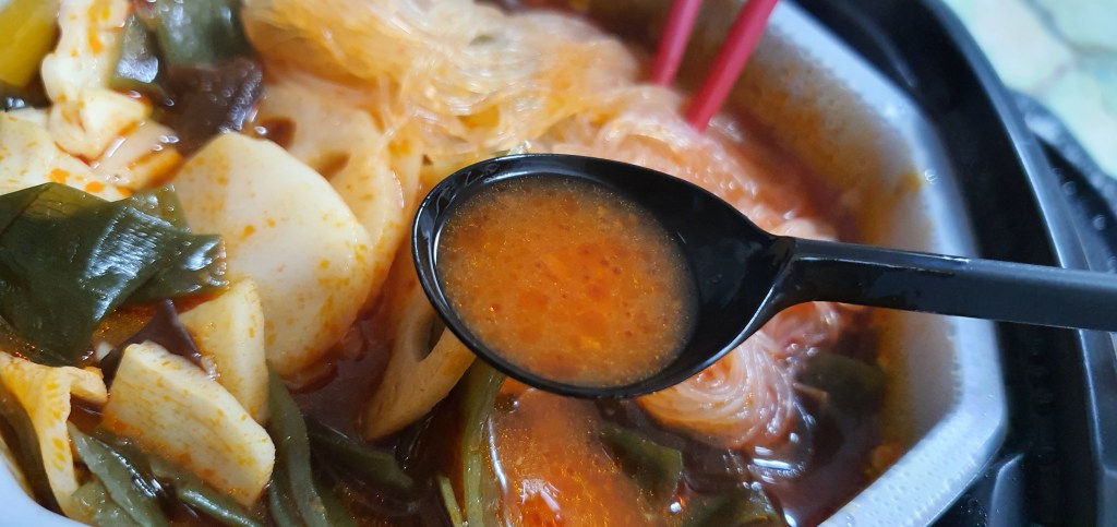 As I dig into the bowl, the sizzling subsided and the smoke lessened. The vermicelli was quite well cooked and soft having soaked up the tomato soup. Other root vegetables like potatoes and lotus root were more on the crunchy side so if you prefer them to be softer, leave them to cook up to 20 mins. There was a lot of lotus root, seaweed, bean curd and potatoes which were surprisingly fresh as they did not have that canned texture and taste. The vegetables were still juicy and crunchy so that was a plus point.