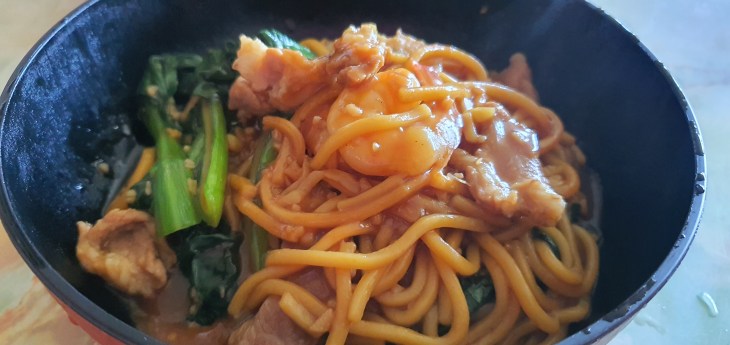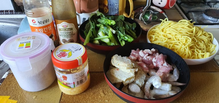 – 500 grams of round or flat yellow noodles ( flat one is preferred as round ones are more salty which needs to be washed before use)