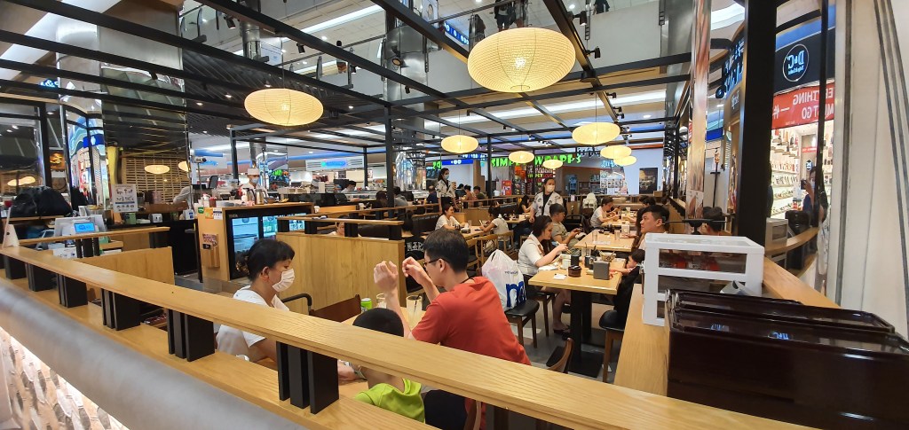 Located within the atrium of Harbourfront shopping mall, it is the only restaurant with proper seating for dine in while the surrounding food outlets are all smaller kiosks or outlets for takeaways only. In the absence of a roof, they have included metal bars sitting across the restaurant horizontally for their ambience lights to give the restaurant a more cozy lighting scheme as compared to the harsh mall lights. The restaurant can sit close to 50 persons in non safe distancing times.