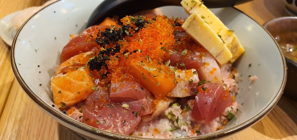 The highlight of my meal was probably the sashimi bowl and you can easily see that the raw fish bowls are the most popular menu as every table had at least 1 bowl. There were many variations of sashimi bowls and I ordered one that had the minced tuna sashimi topped up with chunky pieces of tuna, salmon, yellowtail and scoops of prawn roe. The rice serving was small so you don’t get overly full after finishing the entire bowl and you get a very balanced taste of fresh fish mixed with fluffy sweet and sour sushi rice.