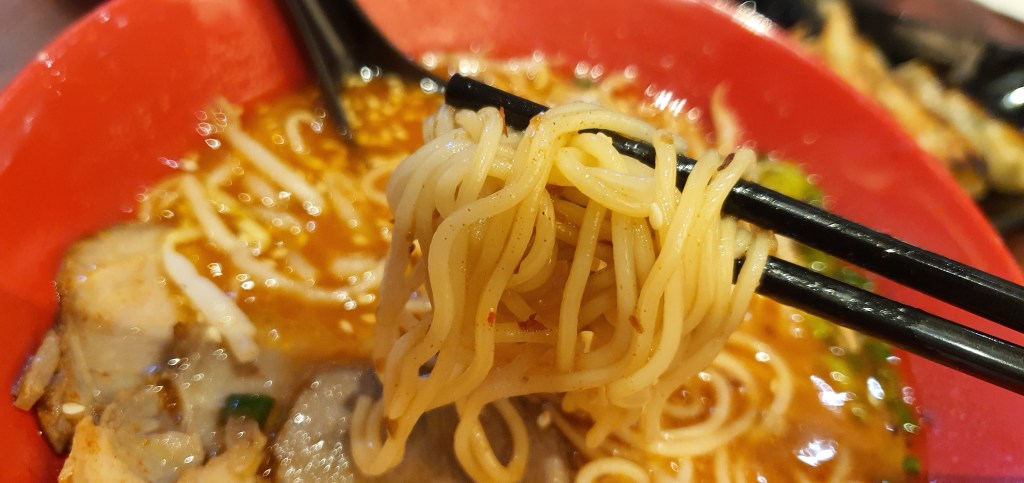 I ordered the char siew miso flavoured ramen and they came in their signature red bowls and large black spoons. The serving is just enough for 1 person but for bigger eaters, you might wish to add noodles.