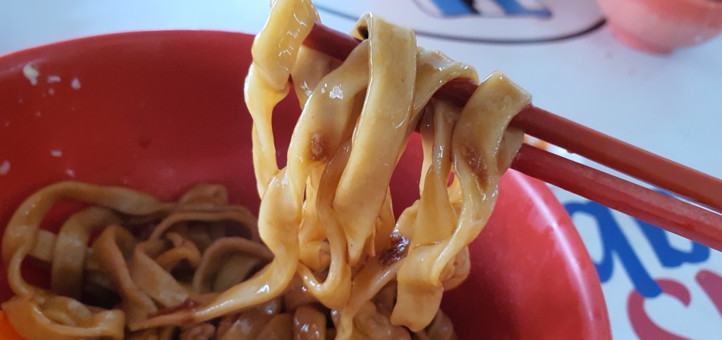 After giving the noodles a good toss, you will realise that the dry noodles has this light brown sauce with a semi thick consistency that coats the noodles very well.