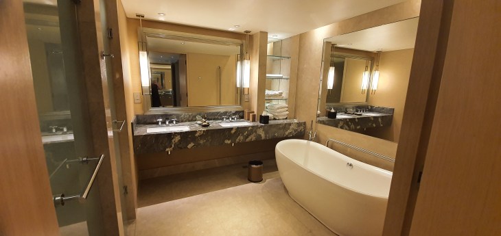 The bathroom was huge with a standalone bath tub area and a separate shower and toilet area complete with double sinks which is ideal for twin sharing rooms.