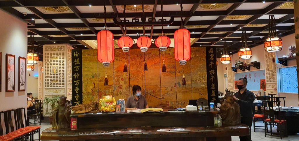 When you step further into the restaurant, you can see the continuity of the same red lanterns and hand painted wall murals on the ceilings and pillars giving the entire restaurant a classical Chinese atmosphere.