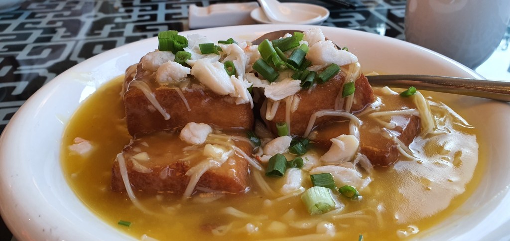 The golden pumpkin bean curd with crabmeat and enoki mushrooms has a nice homely flavour to it. The flavours are pretty light but tasty enough and would be a great complement with white rice. The crab meat serving can be a bit more generous given the cost of the dish.
