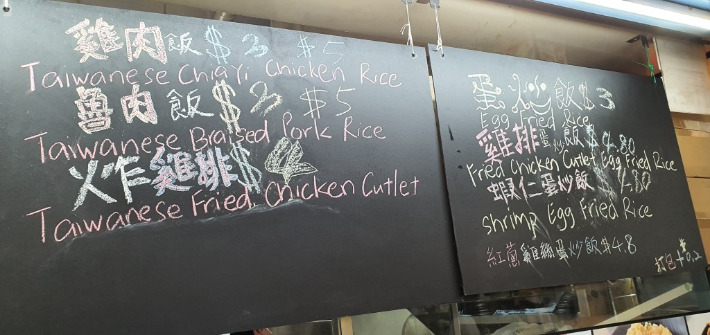 The offerings are limited yet representative enough of the Taiwan night market. Hot favourites at every night market, you can find fried chicken cutlet, braised pork rice, shredded chicken rice, egg fried rice, shrimp fried rice and egg fried rice with fragrant chicken or fried chicken cutlet.