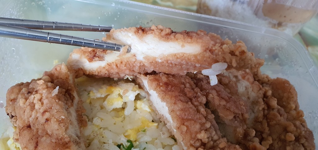 For SGD 4.80, the serving of the chicken cutlet and egg fried rice is pretty decent.
