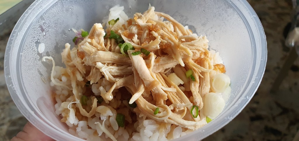 The chap handles all of the cooking like the fried rice and fried chicken cutlet while the braised pork and fragrant shredded chicken has already been pre-cooked in a big food warmer. The lady handles all the order taking, packing of food and serving the pre=cooked dishes.