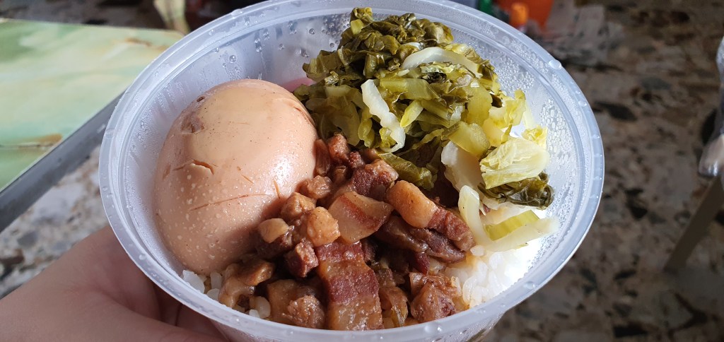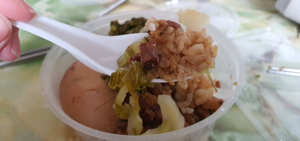 Next was the braised pork rice which came with a braised egg, braised pork belly chunks and salted vegetables for SGD 3. The serving was visibly smaller as with most servings of braised pork rice in Taiwan. I realised while queueing that the rice portions for the braised pork and chicken rice were carefully weighed at 180g for the optimal serving for 1 person so while the serving looks small, it is actually very filling.