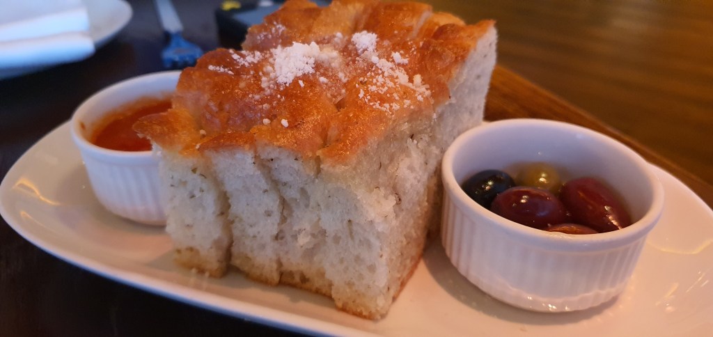 We were served olive bread with a sundried tomato dip with some olives after placing our orders. The bread was cold and a bit dry in texture although I do like the tomato dip which has a nice balance of tangy and sweet flavours.