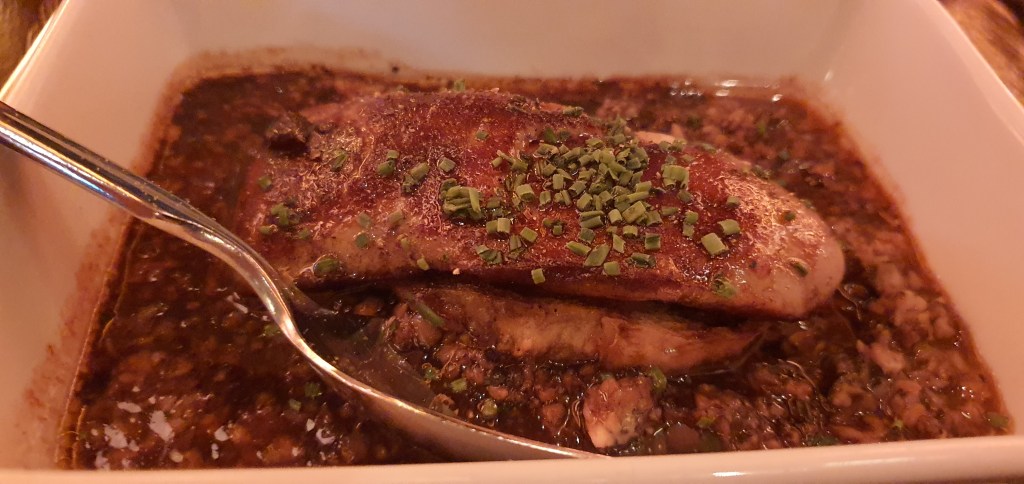 For mains, we had the Rossini which was grilled foie gras with truffle madeira sauce. At SGD 35, the serving of the foie gras was medium sized and came swimming in this thick brown truffle sauce. The foie gras itself was very well grilled and it has a nice light crisp crust but a melt in your mouth texture. The sauce however was a bit too overwhelming and ended up fighting for attention in state of complementing the foie gras.