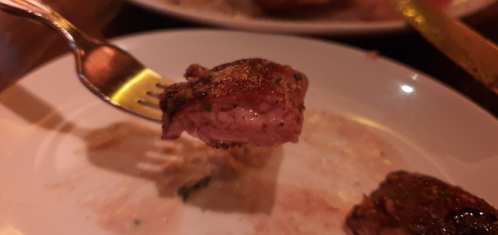 As you reach the inner portion of the pork chop, the flesh was slightly more reddish and definitely more moist with the meat juices. It was tastier as you got to the center of the chop even without the sauce as the meat was very well seasoned. Personally, the size of the chop was good for 2 to share and the longer you take to eat it, the meat loses the meat juice so It is best to tuck in the moment it is being served.