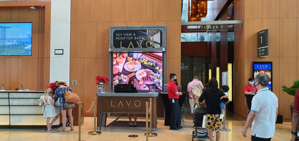 Situated at the tower 1 of the MBS hotel, there is a small reception counter at level 1 where you can check in for your reservations before you are allowed into the lift lobby.