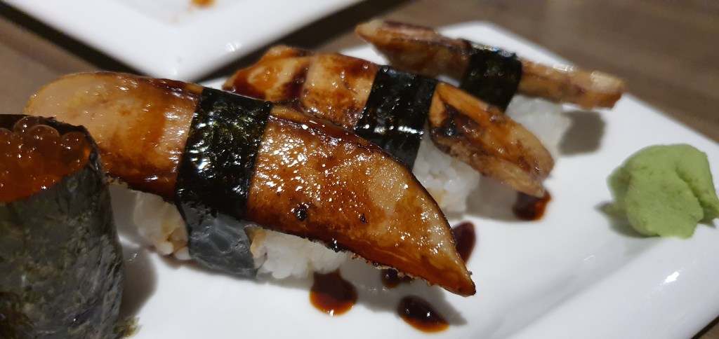 We finally moved on to cooked food and this is one sushi that I highly recommend. The foie gras sushi came with a generous slab of foie gras which was grilled and glazed with brown sauce. The foie gras was perfectly seared with a tender and melt in your mouth center and a fragrant crispy surface. The sauce give it subtle soy flavour which did not take away the original flavour of the foie gras.