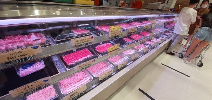 Behind the fresh vegetable section, you will find a huge area dedicated to fresh meats and seafood.
