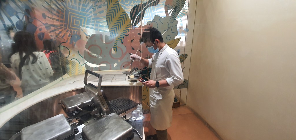 To be honest, I did not know much of this gelato store unless my nieces bugged me into buying them ice cream while we were visiting Jewel and so I joined the queue which was pretty fast moving. While queuing, you can look at the staff making the freshly baked cones from the open view glass panels