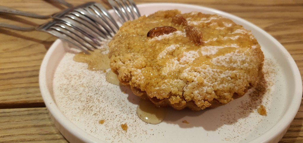 We also ordered the apple crumble tart which came with a maple syrupy drizzle. I liked that the crumble on top of the tart was very buttery and crunchy which gave the tart very nice texture and the tart itself was not too sweet. However, the filling of the tart was slightly disappointing with a flat taste.
