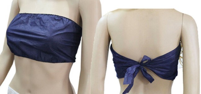 For ladies wondering how the disposable bra is like, it is basically the same material as the disposable panties with elastic band on the top and bottom part and a tie back. For more endowed ladies, the bra also holds ok and you can double the disposable bra if you wish to feel more secure
