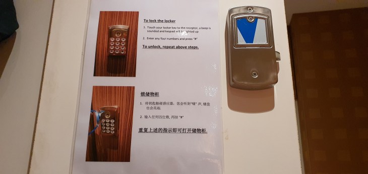 The locker will also provide detailed instructions on how to lock the door. The locker is big enough to put in a medium sized duffer bag and if you are worries about your shoes, you can also place them inside the locker. For those ok with leaving their shoes outside, there is a small slot below each column of lockers for you to place your shoes