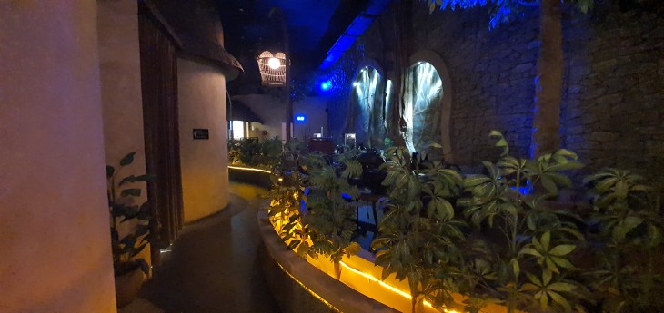 The main area after the entertainment lounge area is the cafeteria area which serves food for free. There are about 15 tables so it could get quite pack during popular times. The cafeteria is decorated like an outdoor oasis with fake palm and coconut tree huts. For those who wants to eat in private can also opt for the private rooms