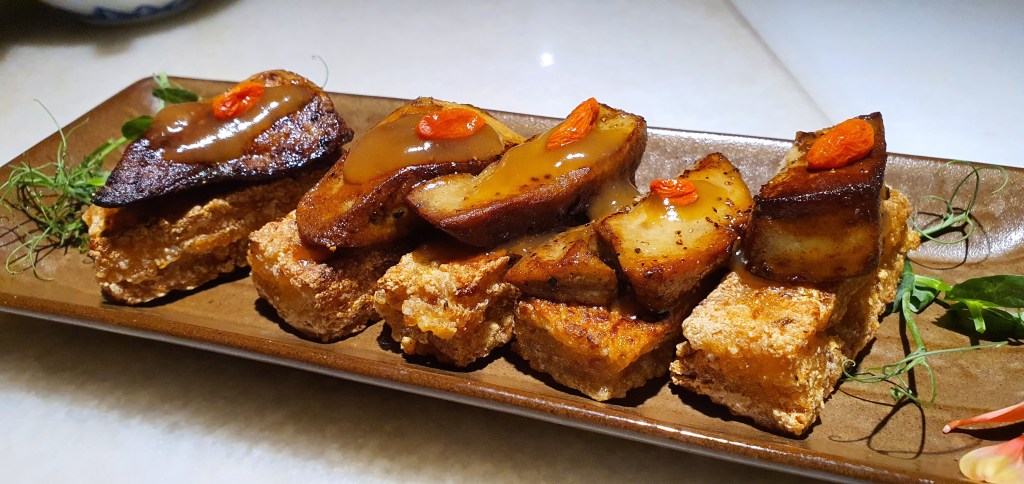 We also ordered the pan fried beancurd with foie gras which was quite a delight with the crispy golden brown tofu topped with a well seared piece of foie gras. The dish had a light savoury sauce which did not over power the natural creamy flavour of the foie gras but the price of this dish was also on the higher side