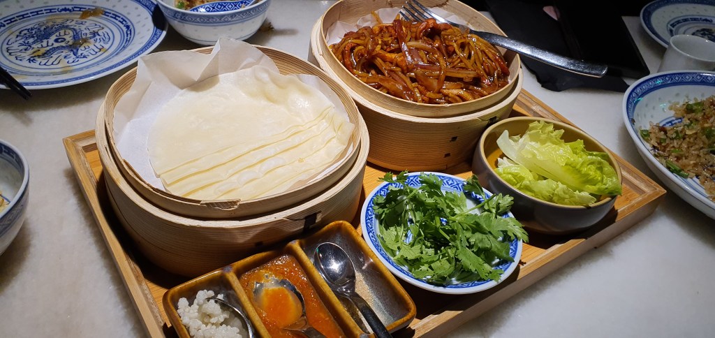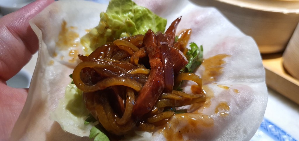 Taste wise, the duck is slightly on the salty side but was balanced out when paired with the thin crepe, fresh vegetables and the chili provided