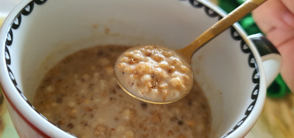 After mixing the powder in, you get a rather liquid milky drink filled with these crunchy round bits which floats at the top of the drink